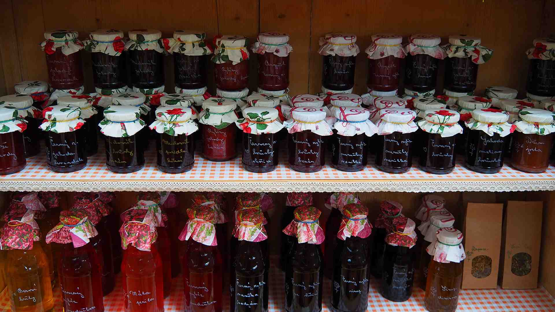 V nabídce míváme také domácí sirupy z námi vypěstovaného ovoce, případně z lesních plodů a také sirupy z našich bylinek. Ceny jsou 70 kč za 0,3 l a 85 kč za 0,5 l.